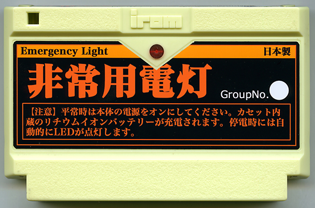 この夏の計画停電の時に大活躍間違いナシの非常用LE Dライトが登場!使い方は簡単。カセットを本体にセットして電源をオンにしておくだけで本体内蔵のリチウムイオンバッテリーが充電されるゾ!停電時にはカセット上部のLEDライトが自動的に点灯し、その状態で本体から取り外して使用することも可能。画面に表示されるQRコードをGPS内蔵のモバイル端末で撮影すれば、現在地のグループNo.がわかっちゃうゾ!ファミっ子のキミもこれで安心だね!