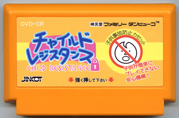 このカセットは子供が簡単に操作できないように 挿し込み口をかたくしてあります。 誤ってプレイしないように設計されておりますが 子供の近くなど手の届く場所からは遠ざけて下さい。 また、舐めても人体に影響のない素材を使用しております。
