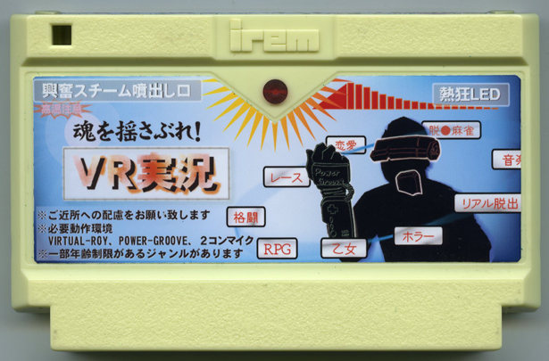8bitVRを全身で浴び、感性の赴くままに魂の実況で聴衆を興奮させろ! 聴衆のテンションが最高潮に達すると熱狂LED点灯で「超リアルモード」に突入! 興奮スチームが炸裂するぜ!! 人に見られたくない場合は「秘密のオフラインモード」で自分の世界にどっぷりハマれるぞ(愛)