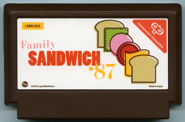 Family Sandwich, commonly abbreviated as Famisammy, is a sandwich simulator video game series developed by LMW Co. (rather confusingly, FamiSammy® is also the name of the sandwich building robot peripheral from the same manufacturer — sold separately). Family Sandwich ’87 brings a number of improvements and bug fixes to the tried-and-true FamiSammy formula, as well as updated ingredient rosters. Surprise and delight your friends with over three brand new Judge Reactions®! And now for the first time in a Family Sandwich game: Reubens! Bon Appétit!