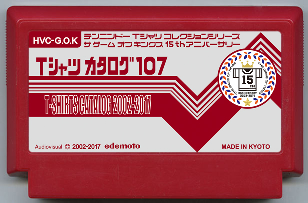 京都の老舗「テンニンドー」からライセンスを取得しファッキンクールなTシャツ「ザゲームオブキングス (GOK)」をドロップし続けるEDEMOTO(旧:江出本衣料)が創立15周年を記念し過去15年で制作した107作品のTシャツをカタログとして一本のカセットにまとめたぞ! 全Tシャツ解説&ミニゲーム「おたたみパニック」と名作Tシャツ箱詰めゲーム「内職さん」も入った完全版! クリアすると108型目の新作Tシャツがもらえるよ。これで君も今日からGOK博士だ!